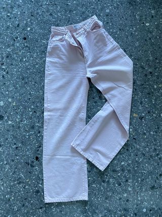 Pantalón vaquero talla 38 de Bershka con un diseño de tiro alto. - Color rosa claro. - Corte recto.