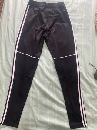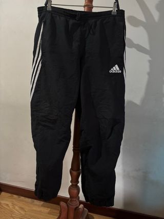 Pantalón deportivo Adidas de color negro con las icónicas tres rayas blancas a los lados. - Diseño clásico. - Cintura elástica.