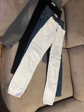 Conjunto de pantalones vaqueros en varios colores. - Pantalones largos. - Estilo vaquero. - 4 pares de pantalones de varios colores y diferentes marcas, con muy poco uso, alguno de ellos puesto una sola vez, pierna estrecha