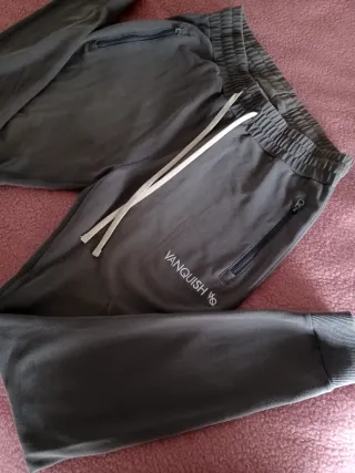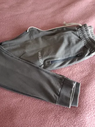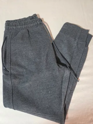 Pantalón elástico de color gris, ideal para chico. - Cintura con cordón ajustable. - Bolsillo lateral con cremallera. - Puños elásticos en los tobillos.