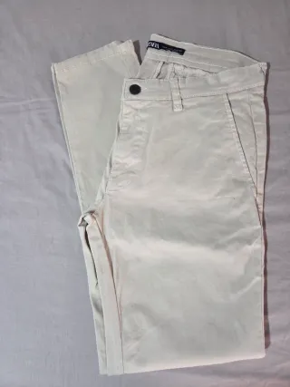 Conjunto de dos pantalones para hombre. - Un pantalón de color beige. - Un pantalón vaquero negro con rotos.