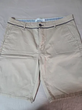 Pantalones cortos de vestir para hombre. - Cintura con trabillas y detalle de ribete. - Cierre de botón y cremallera. - Bolsillos laterales.