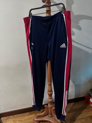 Pantalón deportivo Adidas con detalles en rojo y blanco. - Diseño con franjas laterales. - Cintura elástica.