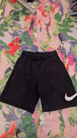 Pantalón corto deportivo de Nike en color negro. Presenta un diseño con múltiples logotipos de la marca. - Talla pequeño en la cintura - Bolsillos laterales. Algodón