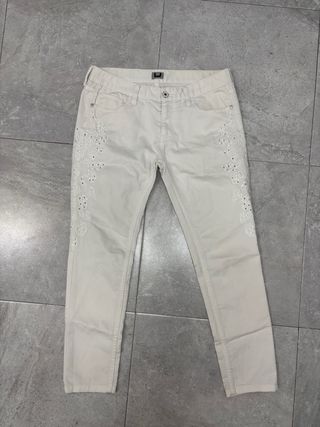 Pantalón Blanco Zara Talla 42 Mujer