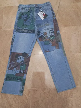 Pantalón vaquero con un divertido estampado de Mickey Mouse y estilo patchwork. Nuevo a estrenar con 🏷 Envío rápido si elijes impost. - Diseño con múltiples parches. - Estampado de Mickey Mouse. - Estilo patchwork.