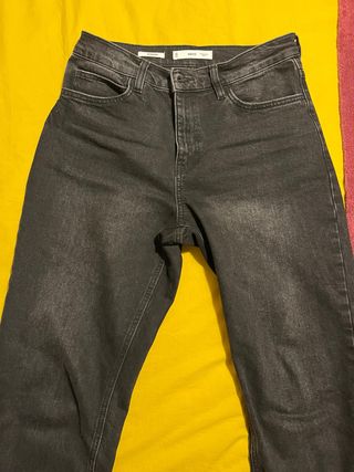 Pantalón vaquero de Mango en color gris. Diseño moderno y versátil. - Corte recto. - Cintura alta. - Cierre de cremallera y botón.