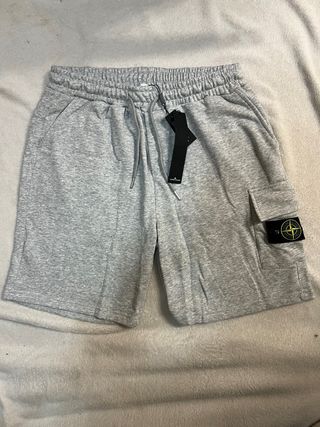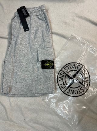 Pantalón corto de Stone Island en color gris. - Diseño tipo cargo. - Cintura elástica con cordón. - Bolsillos laterales y trasero. - Parche distintivo de la marca en el bolsillo lateral.