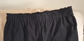 Pantalón corto negro para mujer, nuevo, sin usar. Talla XL, una 42-44 aproximadamente. De poliester, para uso en secadora. - Cintura elástica con fruncido. - Tejido texturizado.