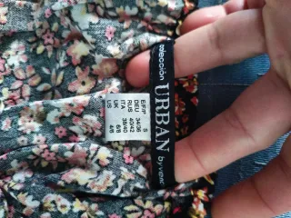 Conjunto de dos prendas de la marca Urban. 9 euros los dos juntos. - Mono corto estampado. - Pantalón largo liso.