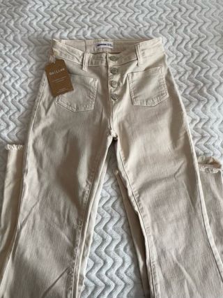 Pantalón vaquero largo de campana de Brownie color beige. Nuevos con etiqueta. Talla xxs, a una Xs también le pueden venir porque son elásticos.