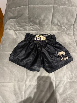 Pantalones de kick boxing de la marca Venum. Diseñados para la práctica de deportes de combate. - Cintura elástica con cordón. - Logo de Venum en la cintura y en la pierna.