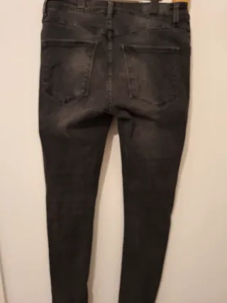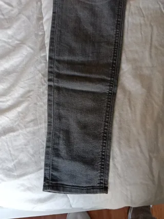 Pantalón vaquero de Zara en color gris. Corte ajustado. - Talla 36. - Diseño de cinco bolsillos. - Cierre con cremallera y botón.