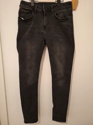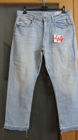 - Pantalones vaqueros de hombre Zara. Corte moderno. Lavado claro. Detalle deshilachado en los bajos. Buen estado. Precio 5euros. - Pantalón tipo tejano color teja, marca talla 46 pero es un poco justo. muy buen estado. Precio 5euros. - Pantalón tejano con detalle de botones a la vista, como nuevo, poco uso, de KIABI. Precio 5euros. - Sudadera con cremallera y bolsillos, buen estado por 3euros. +++NO ENVIOS..SE RECOGERA EN ESPLUGUES X LAS TARDES. Metro L5 y Tram.