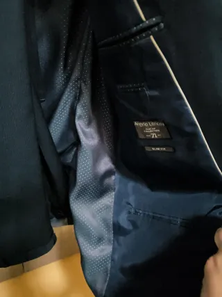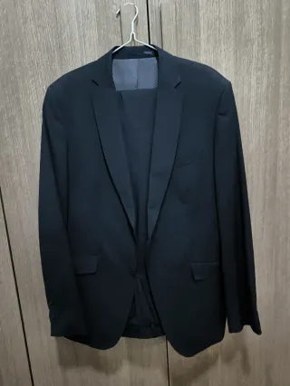 Conjunto de traje de chaqueta y pantalón azul marino oscuro, a poca distancia se ve negro - Chaqueta con solapa clásica. - Puños con botones.