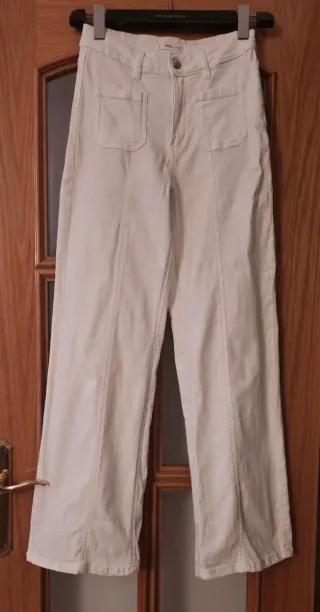 Elegante pantalón de vestir de la marca Uterqüe. - Diseño recto. - Detalle de tachuelas y perlas en el lateral. - Cintura alta.