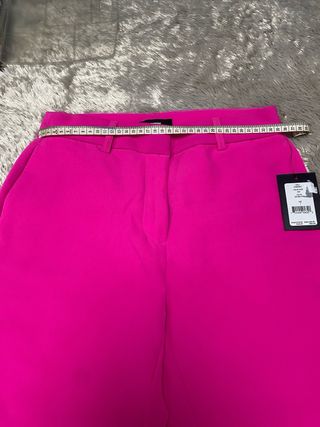 Pantalón de vestir DKNY en color rosa vibrante. Diseño elegante y moderno. - Corte recto. - Cintura alta. - Cierre de cremallera y botón. - Bolsillos laterales.