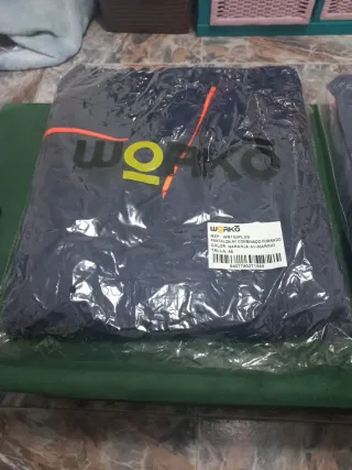 Pantalón de la marca WORKO en color azul y naranja. Franjas grises reflectantes. Con bolsillos Temporada primavera verano. - Talla 4XL / 48 / 20. Hay más de una unidad