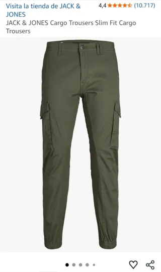 Pantalones cargo de la marca Jack & Jones en talla S. Son de corte slim fit y color verde. - Corte slim fit. - Bolsillos cargo laterales. - Cintura con trabillas para cinturón. - Bajo elástico.