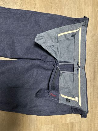 Pantalón de vestir azul de corte slim. - Diseño elegante y moderno. - Tejido de calidad.