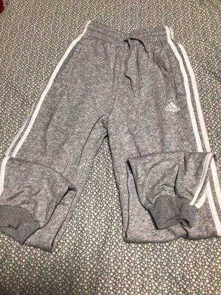 Pantalones deportivos Adidas de color gris. Cuentan con el diseño clásico de tres rayas en los laterales. - Cintura con cordón ajustable. - Puños elásticos en los tobillos. - Logo de Adidas bordado.