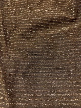 Conjunto de pantalón y casaca de la marca Brunella. El tejido tiene un diseño de rayas finas con un toque brillante. - Casaca sin mangas con cuello alto. - Pantalón de corte recto.