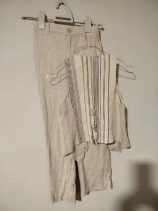 Conjunto de pantalón y chaleco para niño. - Chaleco con botones. - Pantalón de lino.