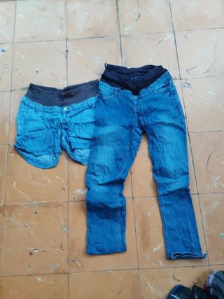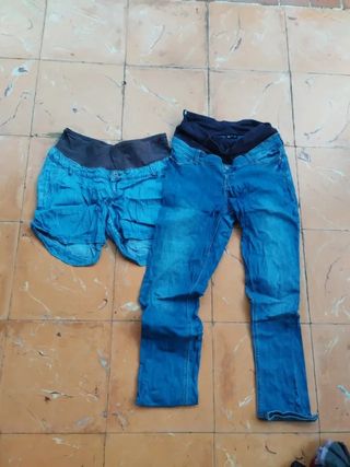 Precio 2 Pantalones Premamá Vaqueros,corto talla 42,largo talla 40