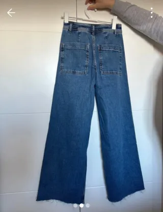 Pantalón vaquero ancho de Pull&Bear, sin estrenar. - Corte ancho. - Bajo deshilachado. - Cierre de cremallera y botón.