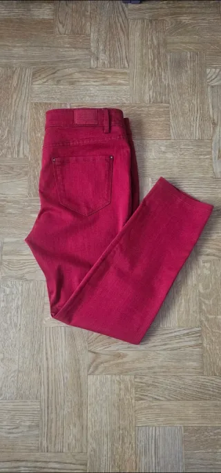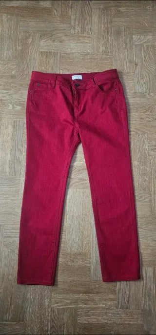 Pantalón vaquero de la marca Cortefiel en color rojo. Un básico para tu armario. - Corte recto. - Bolsillos delanteros y traseros. - Cierre con cremallera y botón.