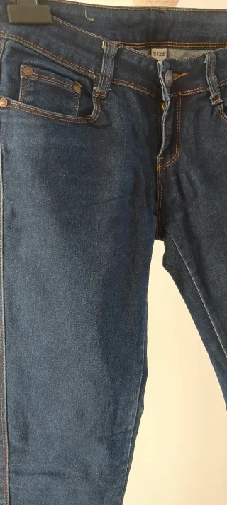 Pantalón vaquero de corte ajustado. - Tejido denim. - Costuras en contraste. Medidas: - Cintura: 34 cm. - Caderas: 42 cm. - Largo: 92 cm.