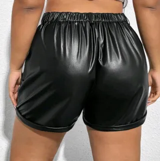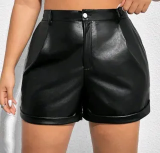 Pantalones cortos de polipiel con un diseño moderno y favorecedor. - Cintura alta. - Bolsillos laterales. - Dobladillo enrollado en los bajos.