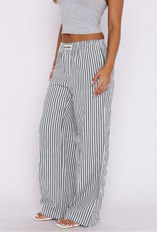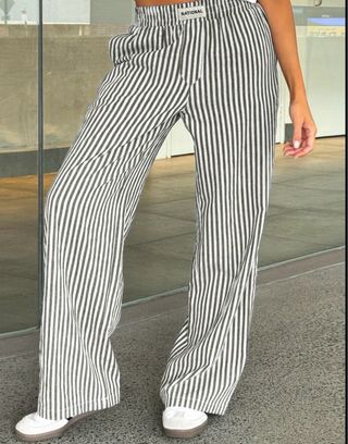 Pantalones de rayas verticales con un diseño moderno y cómodo. - Cintura elástica. - Piernas anchas.