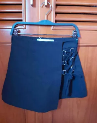 Falda pantalón de Bershka con un diseño moderno. - Detalle de cordones y ojales en un lateral. - Corte asimétrico.