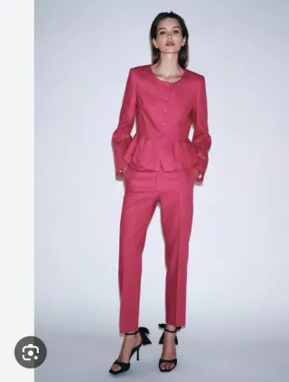 Traje Zara Rosa Peplum Pantalón