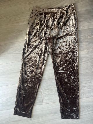Pantalón efecto terciopelo beige/marrón T.42