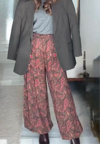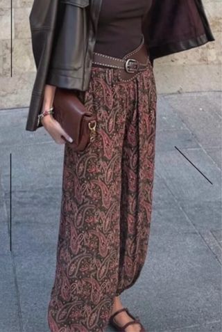 Pantalón bombacho de Zara con un bonito estampado. - Diseño holgado y cómodo. - Estampado paisley en tonos verdes y rojos.