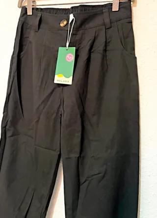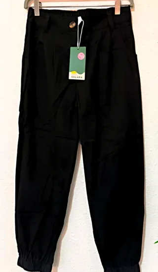 Pantalón jogger negro Halara nuevo con etiquetas. Talla: S (regular). 100% algodón. Cintura con botón y cremallera. Bolsillos laterales. Bajo con goma tipo jogger. Corte cómodo, estilo casual. Es un pantalón muy versátil, válido tanto para diario como para viajar o looks informales.