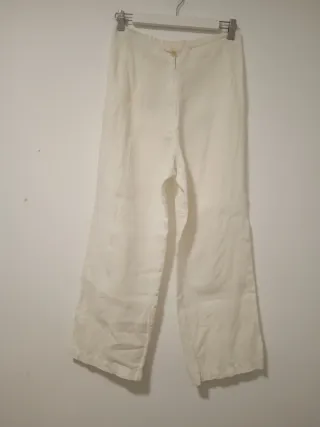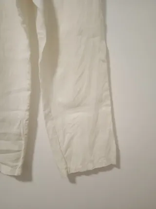 Pantalón lino mujer T36 blanco roto