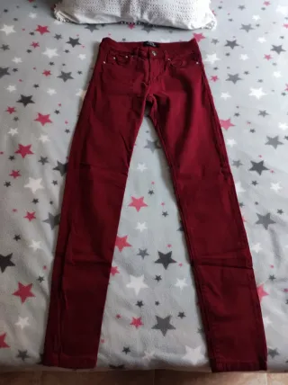 2 pantalones vaqueros pitillo, chica, talla 32 (pone 34 pero yo uso la 34 y me queda apretado): - Pantalón, color granate/burdeos, marca Bershka, medida de largo 93 cm. Es elástico. - Pantalón vaquero, marca Lefties, color azul aguas elástico. Medida largo 90 cm. En buen estado. LOS DOS PANTALONES POR 3€! ¡HAGO ENVÍOS!