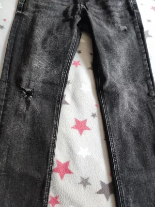 Pantalón vaquero pitillo, roto (1 rodilla un poco) chica, de cintura alta, color negro oscuro, marca Stradivarius, talla 36 medida de largo 91 cm. Es elástico. En buen estado. HAGO ENVÍOS!