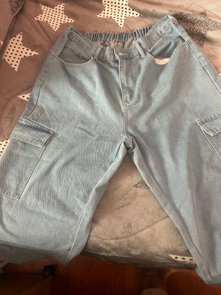 Pantalón Cargo Ancho Shein Azul Lavado Medio