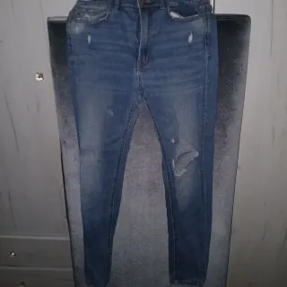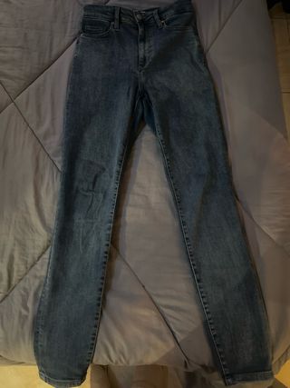 Pantalones vaqueros de corte ajustado. - Cintura alta. - Cierre de cremallera y botón. - Bolsillos delanteros y traseros. - utilizado dos veces