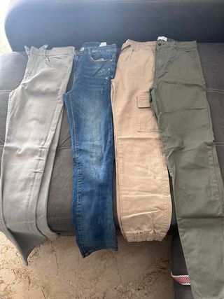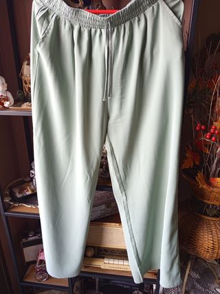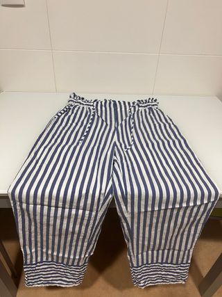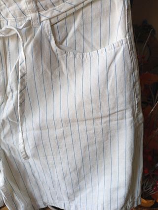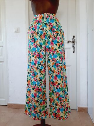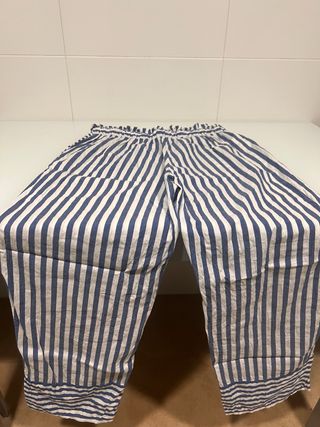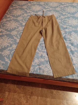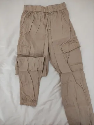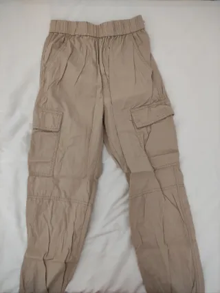 Son de tejido fino, perfecto para primavera-verano, y cintura elástica, además de varios bolsillos. Se ha usado una sola vez.