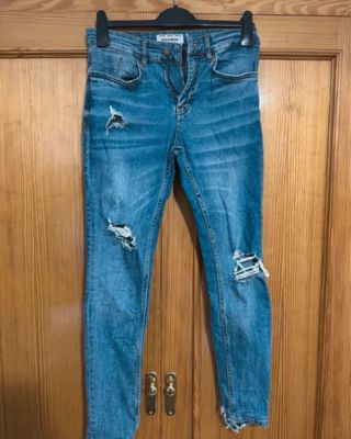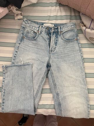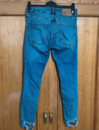 Pantalones vaqueros rotos de la marca Pull&Bear. Son de color azul y están en buen estado. Tienen un ajuste entallado. - Ideales para un look casual.