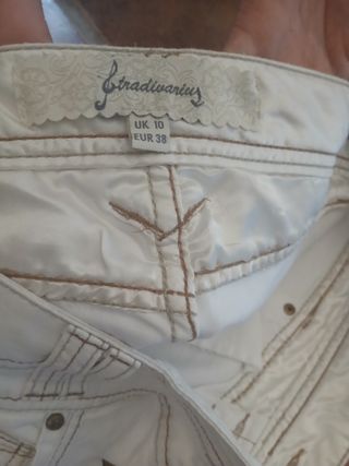 Pantalón de Stradivarius en color blanco. - Talla UK 10 / EUR 38. - Diseño moderno y versátil.