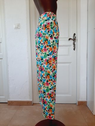 Pantalones de Stradivarius con un alegre estampado floral. - Diseño de pierna ancha. - Cintura alta. - Cierre de botón y cremallera.