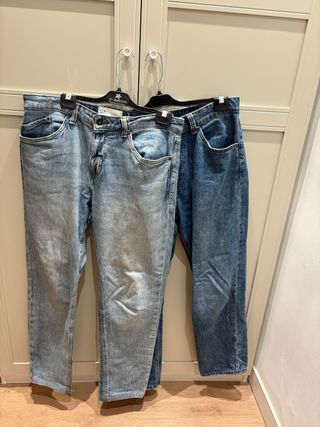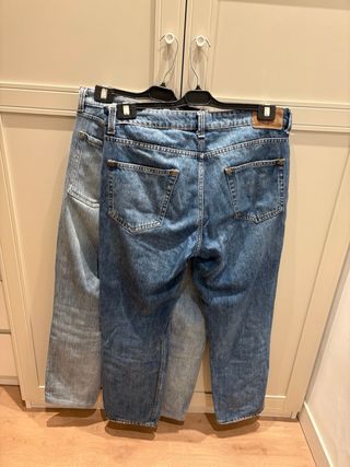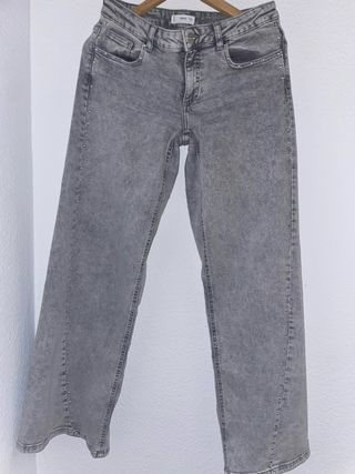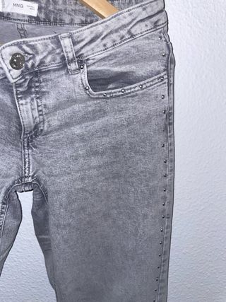 Pantalón vaquero gris de Mango con un diseño moderno. - Detalle de tachuelas a lo largo de las perneras. - Lavado desgastado para un look casual. - Corte recto. Es la talla L que equivale a una 38 , son de mango teen Son muy bonitos y de tiro bajo