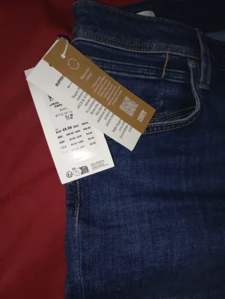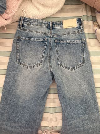 Pantalón vaquero de H&M para premamá, modelo Mama Straight Leg. - Corte recto. - Cintura elástica para mayor comodidad durante el embarazo. - Diseño de cinco bolsillos. - Tejido vaquero resistente. - Talla 42 equivalente a una L. US 12