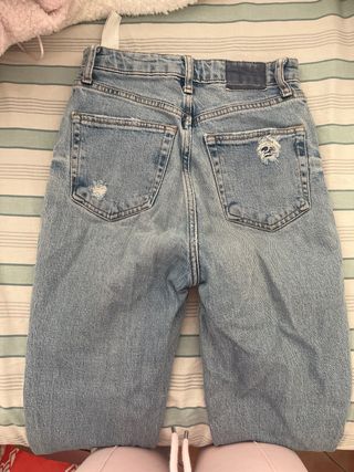 Pantalón vaquero de corte moderno. - Diseño desgastado. - Cintura alta. - Bolsillos traseros. - Etiqueta de la marca en la parte trasera.